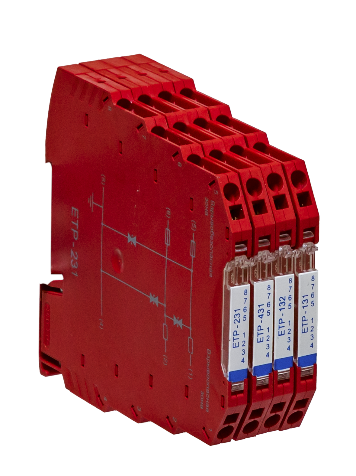 Барьеры искрозащиты ETP предназначены для применения в качестве средства сопряжения искробезопасных (оборудование во взрывоопасной зоне) и искроопасных (оборудование во взрывобезопасной зоне) цепей без гальванического разделения. Защитные диоды (стабилитроны) в барьере искрозащиты ограничивают напряжение, приложенное к искробезопасной цепи, а неповреждаемый токоограничивающий резистор ограничивает ток, который может проходить по искробезопасной цепи.