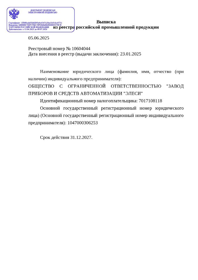 Для оформления заказа заполните, пожалуйста, опросный лист по ссылке и направьте его вашему менеджеру или на электронный адрес product@elesy.ru.