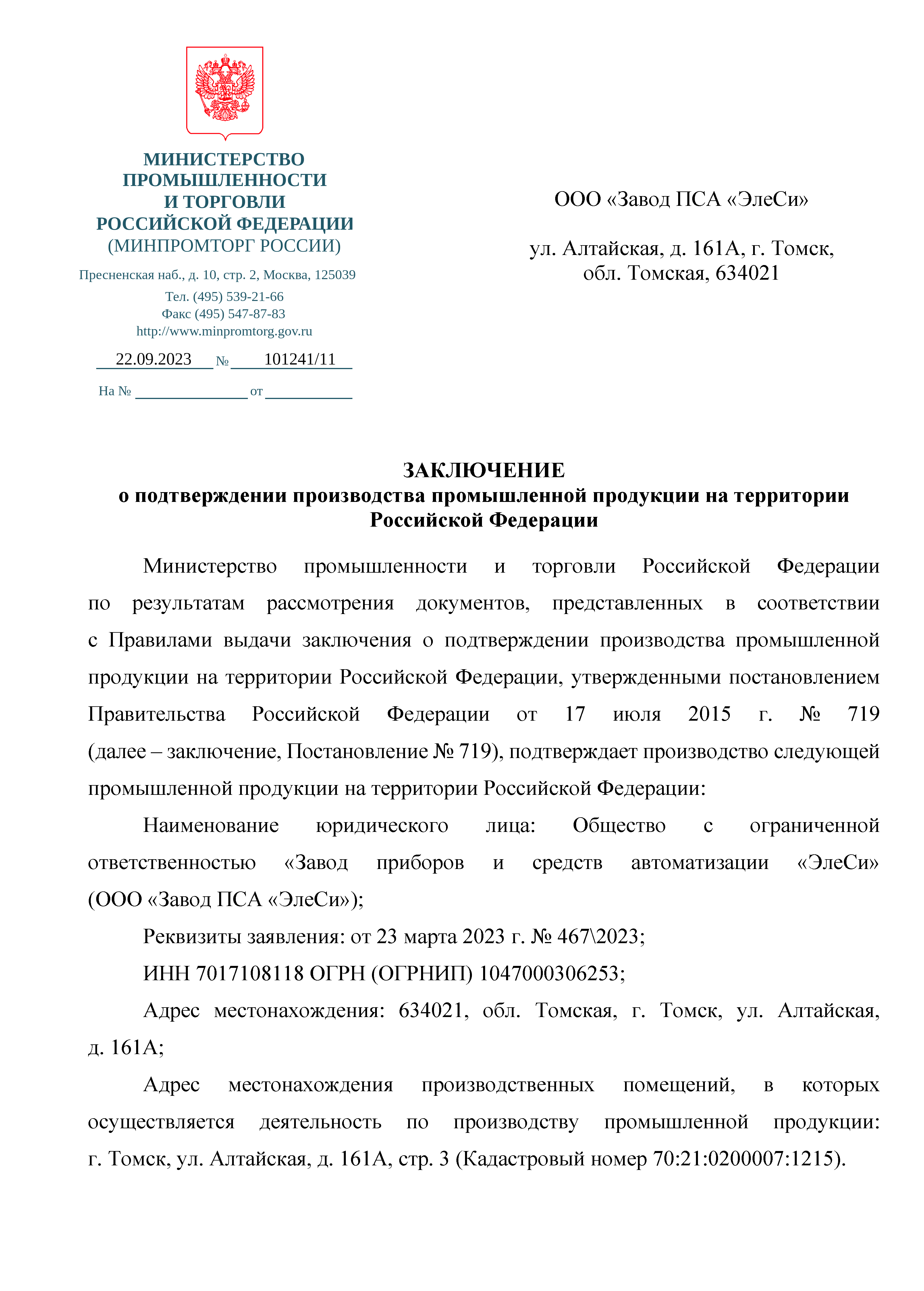 Для оформления заказа заполните, пожалуйста, опросный лист по ссылке и направьте его вашему менеджеру или на электронный адрес product@elesy.ru.