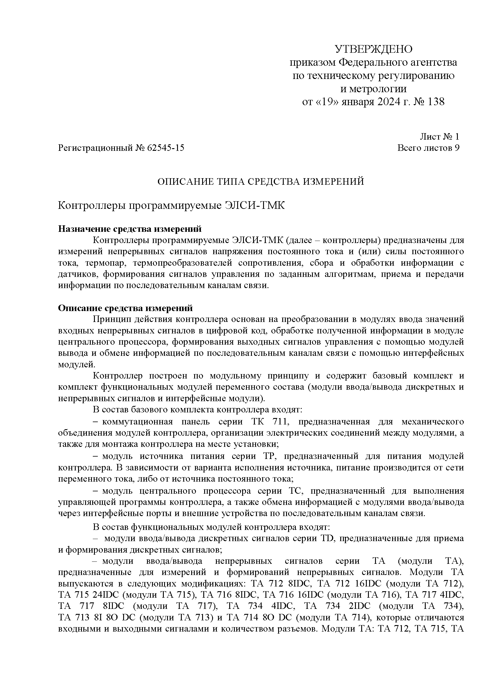 ОПИСАНИЕ ТИПА средств измерений ЭЛСИ-ТМК
