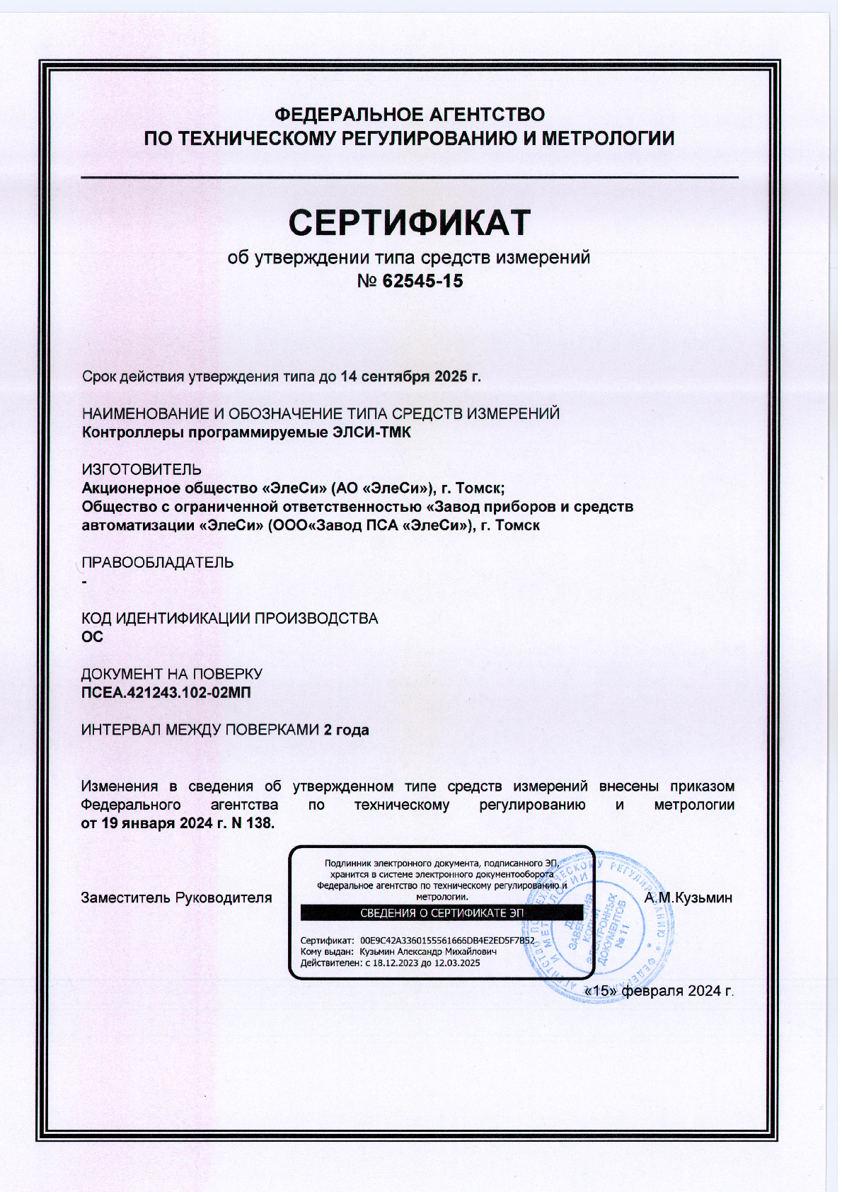 сертификат об утверждении типа средств измерений ЭЛСИ-ТМК